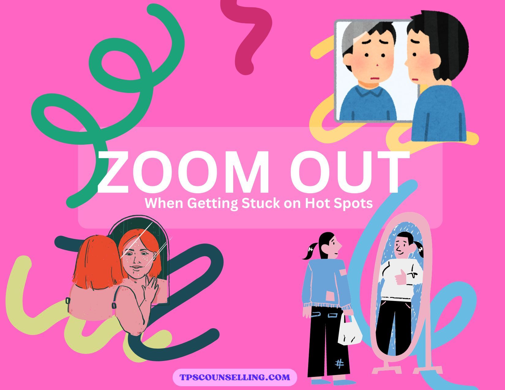 When you find yourself caught up in body image distress, it can feel like your focus zooms in on the "hot spots" — the parts of your body that draw the most criticism from yourself. A helpful tool in these moments is the "zooming out" technique, which involves shifting your focus from isolated parts of your body to seeing it as a whole, and approaching it with neutrality and gratitude.